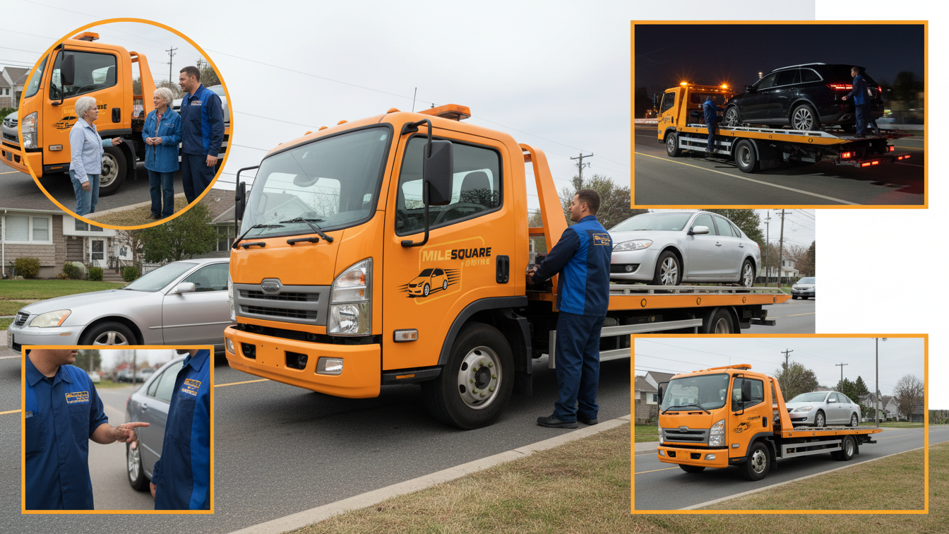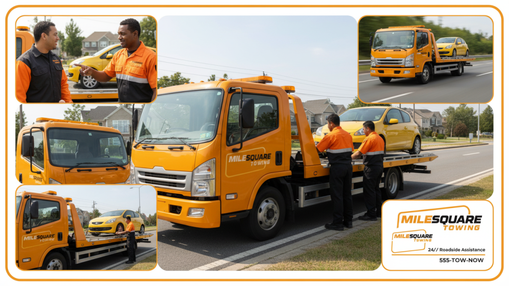 Need towing or roadside assistance right now? Don’t wait—Mile Square Towing is ready 24/7 to help you get back on the road safely. Our professional team ensures quick response, safe handling, and friendly service every time.